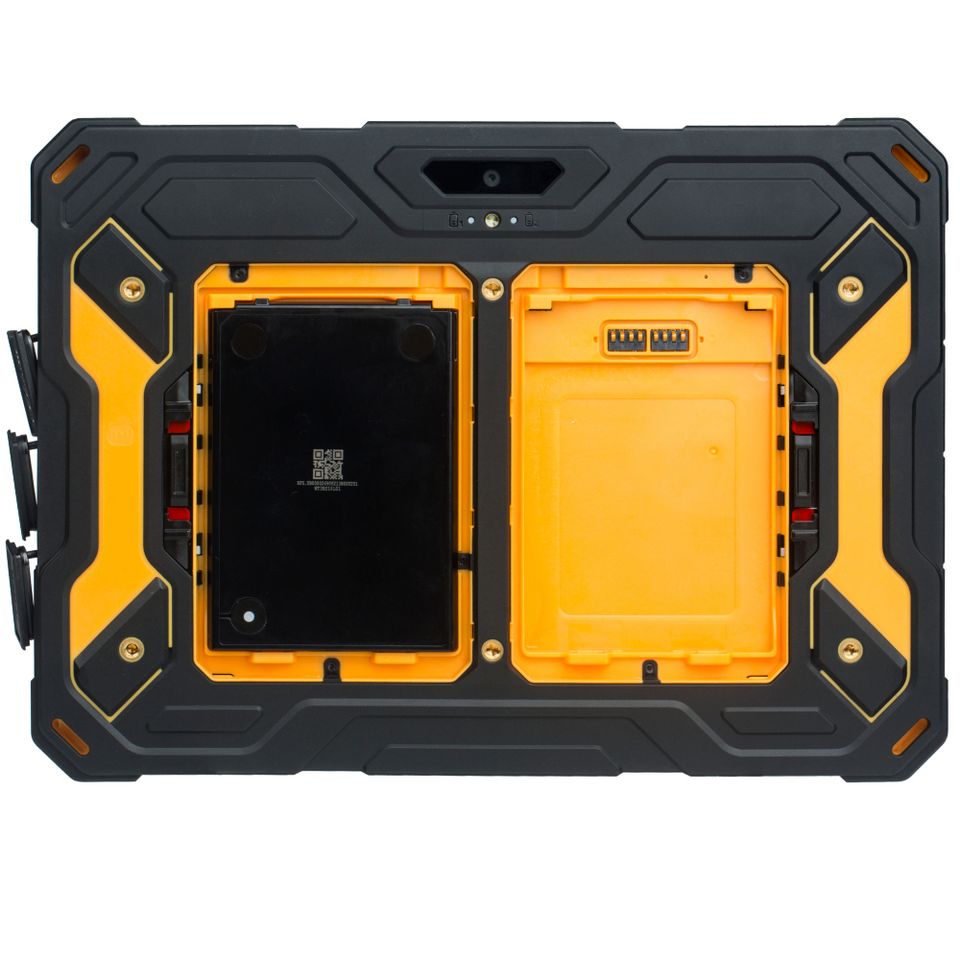 The RG935 is designed to be a multifunctional mobile device in the automotive, utilities, industrial manufacturing, transport/logistics and public safety sector. Two powerful hot-swap (separately replaceable) batteries (4000 mAh each) allow screwless battery replacement during operation. The robust but still very light tablet (930 g) is equipped with a Qualcomm Snapdragon® 665 Octacore processor, which guarantees smooth multi-task processing: With just one mobile device, several activities such as MCPTT/PTT, photo or video functions and, for example, maintenance applications can be processed at the same time without any loss of performance. Three customisable hardware buttons allow users to switch between their most important applications with just one touch. The RG935 supports all industrial WiFi networks - without signal-blind corners - and offers additional operational security and flexibility through 4G technology. Bluetooth 5.0 Low Energy guarantees a secure and stable connection, high speed and a long range with low power consumption. The 10.1'' outdoor display features a widescreen format, full HD resolution (1200 x1920 pixels) and excellent readability from all viewing angles. The particularly scratch-resistant, durable display made of Corning® Gorilla® Glass scores particularly well in field service applications. It can be operated even in the rain with wet hands or gloves, but also performs at full capacity in direct sunlight. The RG935 is NFC-enabled, making it suitable for enterprise-wide access control for time tracking and data verifications. Two USB ports allow the device to be charged and used simultaneously. The USB 2.0 port is used to connect other peripherals, and in reverse-charging mode, to charge other mobile devices; the USB 3.1 (USB-C) port can be used for fast data transfer and tablet charging.