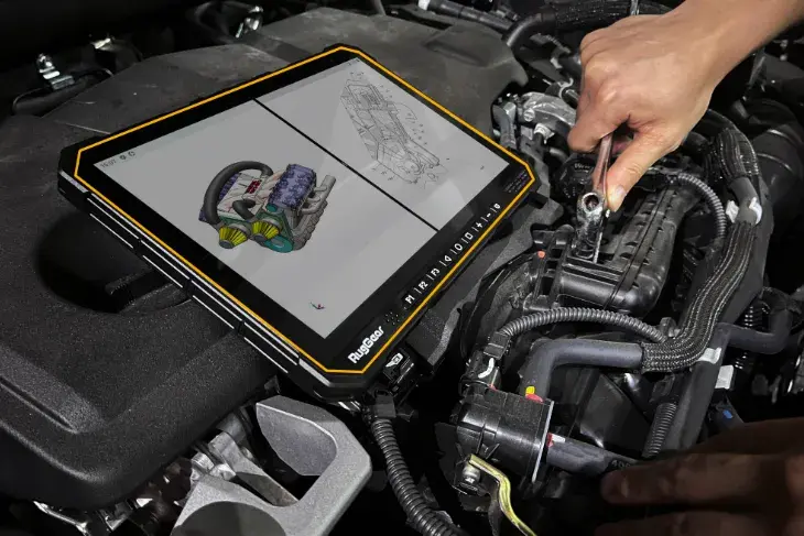 RG935 tablet is designed and ready for efficient communication: With its broad Wi-Fi® range and Dual SIM 4G LTE connectivity, the device is even built for challenging work environments as a stand-alone full communication device.